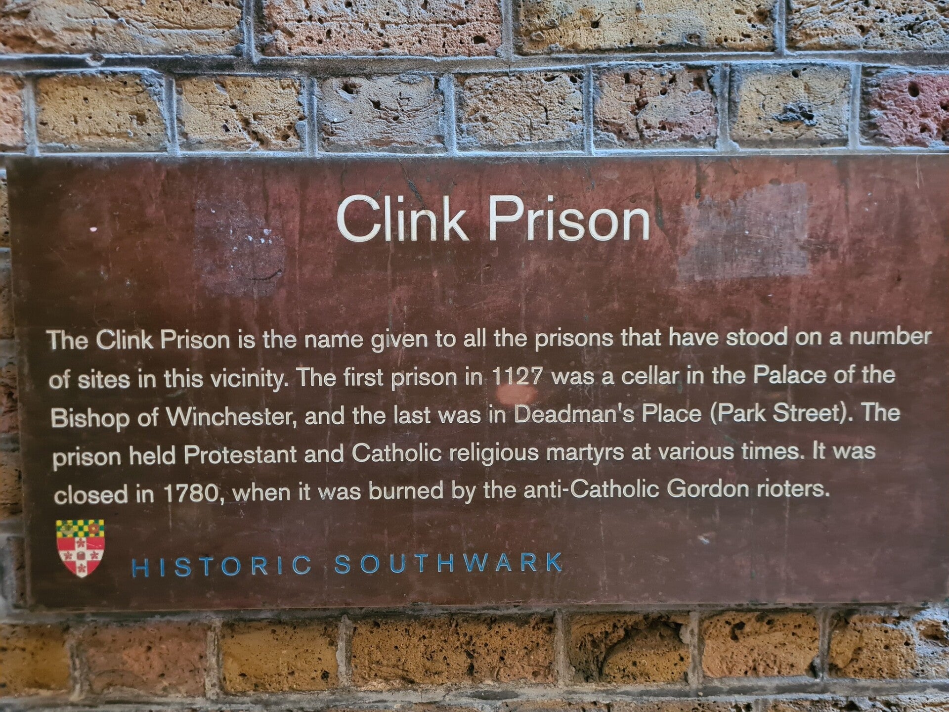 3 Ticks in one day, on a roll so off to The Clink. Nothing to do with Colonel "I know nothing" Klink he of Hogan's Heroes fame. The term "The Clink" has become slang for a prison cell and resulting in the expression, "to be thrown in The Clink." Well this comes from the notorious Clink Prison in Southwark, London.