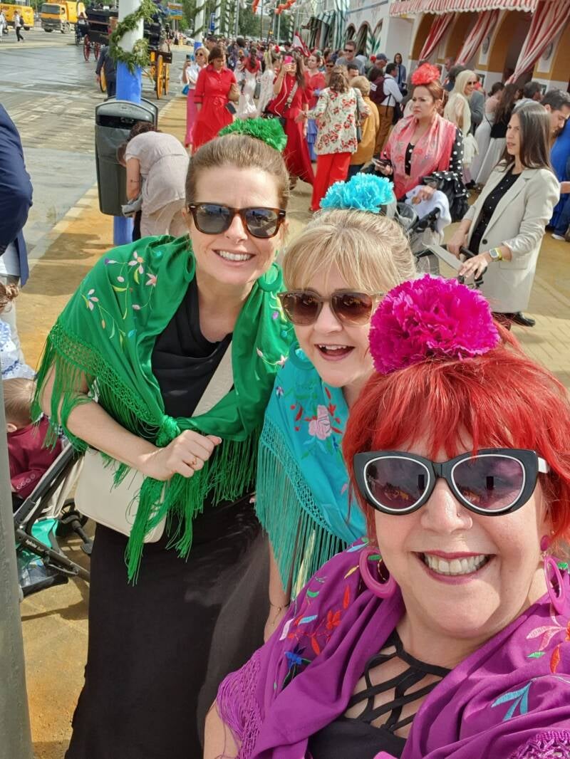 And so the following day, we headed off for breakfast before pre feria beverages and preparations back at the hotel. Now, I would have loved to have frocked up in a full Sevillana dress, but these things are expensive and heavy, so not an option. I had already purchased the 3 of us a shawl, earrings and flowers. With simple black dresses, at least we had made some effort in getting into the spirit of the day! Lots of giggles and it was time to hop on (what else) a bus. Short walk to the fair grounds (it's massive, with over 1,000 casetas and of course a fairground). In Sevilla, the majority of casetas are private, but we managed to find a few of the public ones and have a few drinks and nibbles. It was awesome just being there and wandering around watching the horses and carriages and seeing everyone dressed up. So much colour and joy and not a single bit of aggression to be seen. I did spot two abuelas eying off the last prawn that had a fight to the death edge to it, but the crisis was averted when cute 2 year old granddaughter came over to one and required cheek pinching and much gushing over dress. The other beamed happily as she munched on the last prawn and all was well.