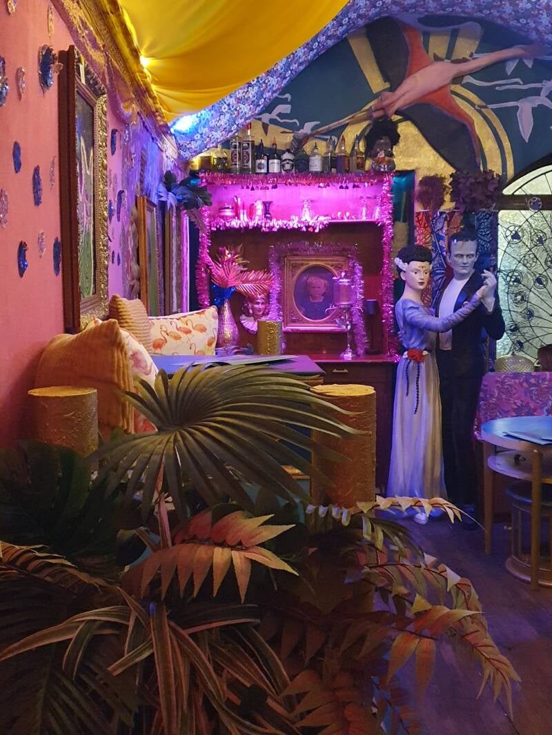 Anyway, it was a very colourful and funky place that we found ourselves in and after a bit of oohing and aahing, we sat ourselves down and awaited enlightenment. The Absinth menu was extensive, so having absolutely no idea what we were doing, we chose three based on their names. Our waiter came along bearing a trolly and all the gizmos that go along with the ritual of preparing our chosen drink. There is a holey spoon (as in it had slits, not any religious significance - although who knows, maybe we were about to see God). There is sugar involved and the liquid is pored through a sugar cube and tbh, I can't remember much else - more to do with memory than any long-lasting effects of the absinth. I did take a video, maybe I need to go back and review.